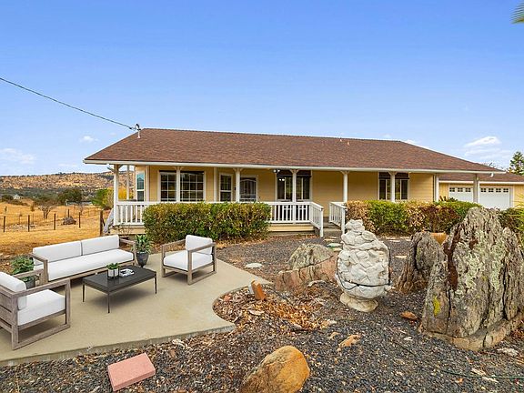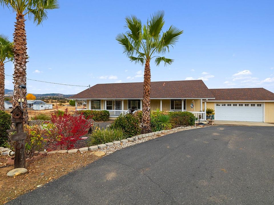 Escape to Your Country Paradise! Welcome to your perfect rural retreat, tucked away at the end of a tranquil road in the Copper Cove Subdivision. This fully fenced, level acre offers limitless opportunities; whether you dream of keeping a horse or other animals, gardening, homesteading, enjoying outdoor play, ATV riding, or parking your RVs, boats, and toys with ease. The home is ideally set back on the property behind a gated entry, accessed via a paved driveway that ensures both privacy and convenience. Step inside to discover a spacious, sunlit interior with vaulted ceilings and an airy, open layout. Oversized windows invite natural light to flood every corner, creating a warm and welcoming ambiance. The living area seamlessly connects to the dining space and a generous kitchen overlooking the backyard and screened-in porch; perfect for enjoying your morning coffee or evening gatherings. The expansive primary suite, tucked behind double doors, offers a private sanctuary with backyard access, a spacious en-suite featuring double sinks, a walk-in shower, and a sprawling walk-in closet with mirrored doors. Two additional guest bedrooms boast ample closet space and delightful views of the landscaped front yard. A guest bath, complete with a tub, shower, and vanity, is conveniently situated between. At the end of the hallway, you'll find extra storage and easy access to the oversized garage. With its bright windows, the garage offers endless versatilityideal for a workshop, home gym, or secure storage for your prized vehicles and equipment. The separately fenced backyard area is perfect for keeping pets or children safe while you enjoy outdoor living. In the front yard, a concrete area makes a perfect sitting or BBQ area, or relax and enjoy the sunsets from the expansive covered front porch! A solar power-purchase agreement offers great savings from typical PG&E rates! Buyers may benefit from this home having an assumable VA loan with a 3.4% interest rate. As part of the Copper Cove community, you'll have access to exceptional amenities like horse riding trails, Blackcreek Park's 7-acre recreational area (complete with a clubhouse, playground, gym, frisbee golf and sports facilities), and exclusive Kiva amenities such as a boat launch, day-use docks, swimming area, BBQ pits and shaded picnic gazebo. Located just minutes from Town Square, premier golf courses, and HWY 4, this property offers the best of Sierra Foothills living where natural beauty and adventure await. The good life begins here!