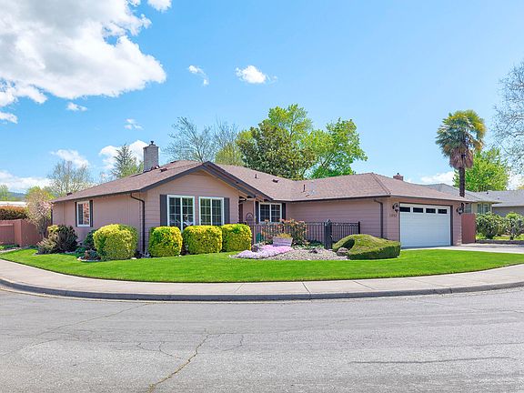 Loving care of this home is evident at every turn. This very comfortable 3 bedroom, 2 bath single level home has a living room, dining room, family room open to a spacious kitchen with granite counters, island, gas range, and lots of storage; large master suite with walk-in closet and new tile shower, granite counter, and double vanity; second full bath has tub/shower combo, granite counters and double vanity; large laundry room with utility sink. Just a few of the many details that make this home so special are ceiling fans every where, wood trim windows, matching oak cabinets and granite counters throughout, and beautiful window treatments. The property is level, and nicely landscaped with sprinklers front and back, gated with privacy fencing, garden area, covered patio, newer gutters with leaf protectors. If you are looking for a home that is so lovely, clean, and well maintained that it just needs YOU, this is it! Comes with Buyer's 1-year Home Warranty.