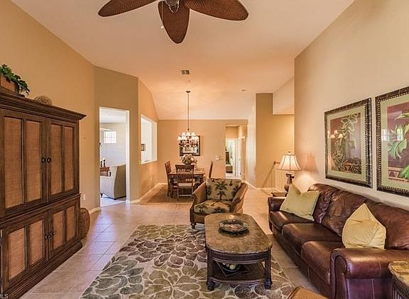 Excellent opportunity to own this spacious, end unit "Lorenzo" model condo, in popular Bay Woods. Tommy Bahama style furnishings included! Neutral tile in all main living areas, including the lanai. Carpeted bedrooms. Dramatic two story entry leads up to the large great room with high ceilings and an open floor plan; including a large den. The master suite is enhanced with two large, walk in closets. Spa like bath features two separate vanities, garden tub, and a separate shower. Two additional bedrooms with large closets and a guest bath. Community pool and spa, lovely bike and walking paths, and a fishing pier on historic Mullock Creek. Residents enjoy a canoe and kayak launch. Optional golf or sports memberships available through Shadow Wood Country Club. Private beach on the Gulf of Mexico is available with a Commons Club membership. Seller is providing one year home warranty to Buyer (ask for details).