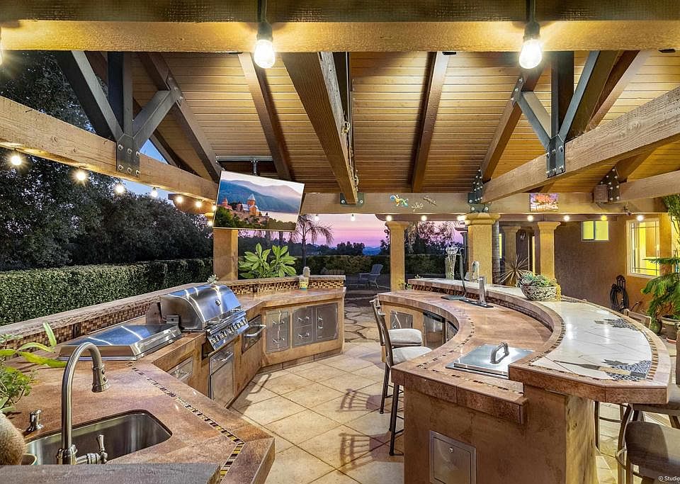 Enjoy breathtaking views and oasis style living in this meticulously renovated home in the Paradise Mountain neighborhood. Situated near a protected preserve, your views are secure. The newly updated kitchen features cherrywood cabinets, quartz countertops, stainless steel appliances, and a floor-to-ceiling wine cooler. The wood-burning fireplace creates a cozy atmosphere for the cooler fall evenings. The primary bedroom includes a patio, walk-in closet, ensuite with a grand porcelain shower, and smart mirrors. A secondary room with built-in Alder wood desks is perfect for a home office. The outdoor space is ideal for entertaining, with a kitchen including a grill, beer taps, and a large TV. Included is also a new fire pit for evening gatherings. The property was once a vineyard and is ready for revival. The home boasts a gated entrance, security system, and 35 owned solar panels as well. Book your showing today!