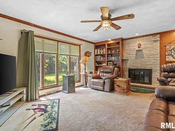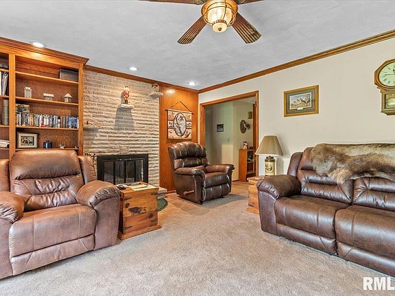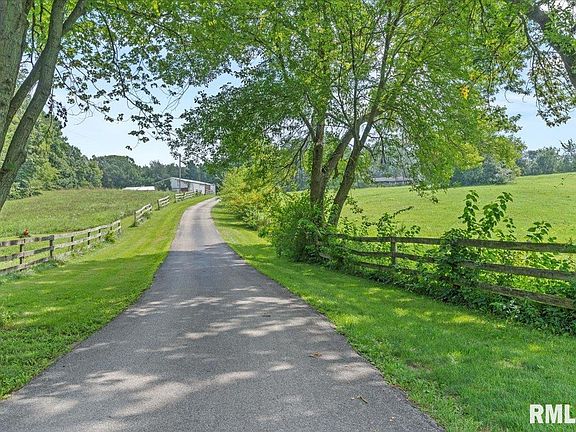 Follow the asphalt lane that leads to an all brick ranch with full basement. Basement is carpeted and has a fireplace, a wet bar, a full bath and a bonus room that was previously used as a bedroom (no egress window). First floor living room and dining room both have fireplaces. The sunroom has a tiled floor and a hot tub that stays. Carrier high efficiency furnace, 7000kw generator, and water softener. 30 combined acres of rolling grounds (10 are tillable) and timber that is home to many deer, two of which are massive. Machine shed and barn includes 11 horse stalls. Property includes parcels #17350100006 & #17260300005. Owner has several items of farm equipment that are available to purchase.