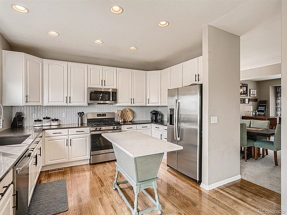 Truly all the features you look for in an amazing home! Beautiful custom wood floors flow throughout the main level which includes dramatic vaulted ceilings, main floor bedroom or executive study that’s totally equipped for today's home office. The kitchen is a chef’s delight, complete with custom quartz slab counter tops, center island, large pantry, and top of the line appliances. The spacious dining room and huge open great room are perfect for all special occasions and entertaining with an impressive wall of windows, built-in shelving, and cozy up by your gas log fireplace. Plenty to love with a luxurious primary suite that features a sparkling remodeled 5-pc bath with deep soaking tub and a large walk-in closet. The large fully finished and newly remodeled walkout basement is totally equipped as a mother-in law apartment that features a new kitchen with breakfast bar, full bathroom and laundry room, 2-bedrooms or media room and a large family room with access to the backyard patio. Professionally landscaped front and back complete with covered front porch and large custom backyard deck and patio, perfect for outdoor BBQs and entertaining! Enjoy ((backing to the greenbelt and park)) with plenty of walking paths, Close to Parks, Trails and Southlands Mall with amazing shopping and dining. Easy access to 470 and DIA. Move-in condition, (Remodeled Interior) (Newer Custom Deck) (Fresh Exterior Paint) and ready for the pickiest buyer... Hurry, THIS IS THE ONE!!