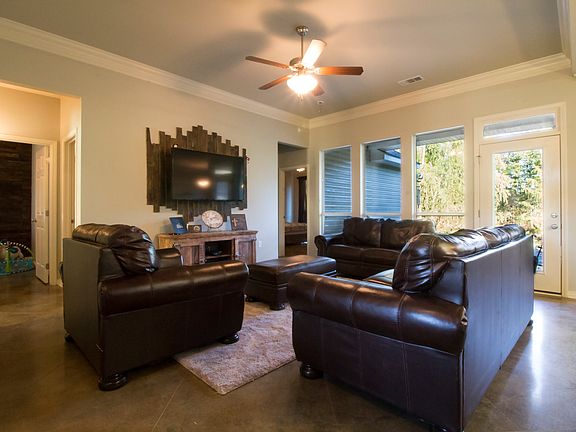 Spacious open floor plan, quartz counter tops, island, all slate stainless steel appliances, stained and scored concrete flooring. Dbl crown molding, 9 & 10 ft ceilings, master walk-in closet, tray ceiling, fenced yard, garage has double steel doors leading into rear yard, Patio is stained concrete with wood finish. Guest bedroom has accented ship lap wall. Gas for dryer, stove and heat. Gas drop on patio for future outdoor grill. FLOOD ZONE X