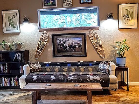 "Unique Luxury Craftsman Dream House" Large parking area in the front with a 2-car garage and an RV barn with 30amp plug in and a dump for a large rig. Or as we do park our 24-foot RV in the back and my husbands large Toyota Tacoma behind it. There is an insulated and paneled workshop entered from the RV barn with power to it. Paver patio in the front and side with black powder coated chain link fence. Three Steps to the porch that spans the front of the house. The whole property is all perimeter fenced. Privacy wood fencing to designate backyard with an 8-foot covered patio, built in propane fire place with seating for 8, water feature, hot tub and 3 raised beds that are perfect for vegetables and herbs. Garden shed with power to it for potting and storing tools and other yard related items. Top of the line turf grass, pavers and concrete along with paths that contain small river rock make it very barefoot friendly. Large vehicle sized gate can open to the “outback” which is natural, but has good space for horseshoes and a slack line between trees. A separate building behind the RV barn in the back yard has 2 rooms and a jack and jill half bath. Would be great for working from home or home schooling. Or as we use it a “mancave” and a “she shed”. On the north side of the house is a fully enclosed animal run with turf grass and pea gravel and a dog door. This keeps our animals safe when we are not home from the resident wild critters, and keeps them safe from ours. It also gives them a place to “go” no matter the weather. We will remove the dog run if you do not want it. Large size master bedroom on the main floor with vaulted ceiling, with laundry room, slider and an inside outside fireplace. The master bath has a large tile walk in shower and a large soaker tub. Separate toilet room and a walk-in closet. The vanity is a single sink that we share quite nicely, but the hall 1/2 bath that is a couple steps out of the master has a good-sized vanity with drawers and storage that could be the other persons vanity. Kitchen, dining and living great room is perfect for entertaining. The stove is on a peninsula with counter seating for 3, so you can see and interact with the guests while cooking. Plenty of storage space with a small pantry cabinet in the kitchen and a larger one in a hall closet, steps away. Breakfast nook with a bay window. Large window and slider face the west and give great views for the woods and sunsets. Fireplace is central on the wall and has space on top for decorating at all times of the year with plug in and a switch to turn on your lights. Upstairs has 2 bedrooms and a full bath. Also, an attic space off of one of the bedrooms that has been finished for storage and has power. There is access from the garage that gives another point of egress. On the landing of the stairs is a “secret room” that we have made a kid’s room. It has an authentic brass ships portal that looks into the great room. We have removed trees and limbed all others to create defensible space. An industrial metal roof with snow rails and heavy-duty heat tape also provides piece of mind in the winter, and for fire safety. We have a propane powered generator that will keep the house going for several days on the 500-gallon propane tank. Central Vac makes cleanup a breeze.