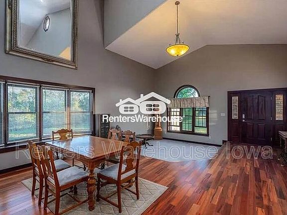 Discover your dream home in this exceptional executive acreage, offering over 3398 square feet of meticulously crafted living space on 7 acres of serene land. 4 Bedroom + 1 Additional Room!! The walk-out, two-story home ensures privacy and tranquility, with a partially wooded area ideal for hunting, alongside expansive grassy fields for versatile outdoor activities. Culinary enthusiasts will delight in the gourmet kitchen, featuring a double dishwasher, double oven, LED under cabinet lighting, luxurious Italian tile, and custom hand-built cabinets. The interiors boast tigerwood hardwood flooring, 3/4" maple trim, and vintage fixtures, showcasing unparalleled craftsmanship. The newly finished basement offers a spacious recreation room and bar area, dry storage, additional bedrooms, and a renovated bathroom. Energy-efficient features include a high-efficiency boiler, water heater, tiled gutters, R-30 insulated walls, PEX plumbing, and heated floors. The expansive loft houses the master bedroom with an en suite featuring a 4x5' shower, whirlpool tub, and a generous 10x12' walk-in closet. This unique luxury property must be seen to be fully appreciated. Pets: Dogs Only, no cats. 2 pet restriction no cats, 85 lbs and under. Additional fees will apply. 12 Month Lease Agreement. Responsible for maintaining lawn care, outdoor maintenance upkeep, and snow removal. All Renters Warehouse - Iowa residents are enrolled in the Resident Benefits Package (RBP) for $45.95/month which includes liability insurance, credit building to help boost the resident's credit score with timely rent payments, HVAC air filter delivery (for applicable properties), move-in concierge service making utility connection and home service setup a breeze. --