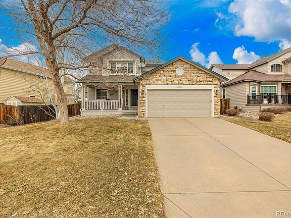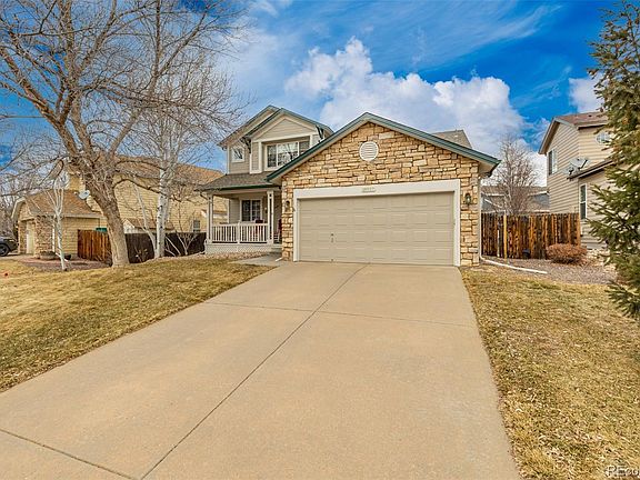 Welcome to sunny Pride's Crossing, where you will find all the amenities that South East Aurora has to offer within a 10 minutes drive. This location boasts Southlands Mall for shopping, parks, trails, and Quincy Reservoir. Greet guests directly into the entry living room, entertain in your eat-in kitchen with adjoining dining area or bring your smoker and bar b q on your back patio. Plenty of space in the yard to build your dream pergola or grow your garden. Place the final touches on this home to make it match the lifestyle you are looking for. Invite the light in and enjoy the spacious high ceilings, hardwood floors and cozy main floor great room. The upper floor bedrooms offer privacy and possibly for the at home work space you may need. Primary Bedroom with spacious walk in closet and en suite bathroom. Garage offers plenty of space for storage, along with an unfinished basement that be made into an additional bedroom, fitness area, theater or whatever you desire. This home is move in ready!