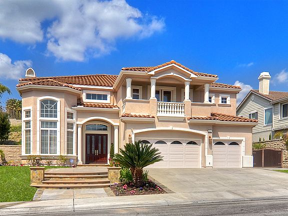 HUGE PRICE ADJUSTMENT! Exciting executive lifestyle in the exclusive Del Mar neighborhood of Vista del Verde awaits. Tremendous attention to detail throughout this impeccable and inviting estate, boasting brand new carpet and paint in soothing neutral tones. Highly upgraded home invites you in through custom double leaded entry doors, onto smooth travertine flooring and a light and bright setting. Grand two-story ceilings accent the lovely office or music room just inside. Massive formal living and dining areas boast a warming fireplace. Gourmet granite kitchen offers plenty of room for meal prep, generous casual dining counters plus sunny breakfast nook. Expansive family room enjoys a second fireplace plus custom built-in entertainment center. Spacious en-suite bedroom, laundry and powder room complete the lower level. The custom iron staircase leads to the upper level, offering an immense bonus room with plenty of room for entertaining family, friends, enjoying a game of pool or TV viewing. Double entry doors lead into sumptuous master suite, boasting glass block shower with dual shower heads, Jacuzzi tub, double vanities, and generous walk-in closet. Three additional upstairs bedrooms with walk-in closets, one a pretty princess suite with private balcony offering relaxing hills views. Outdoor entertaining begins on the sun-soaked patio, around the built-in BBQ, splashing away in the sparkling pool, or gathering on the grassy side lawn. Attends Yorba Linda High School.