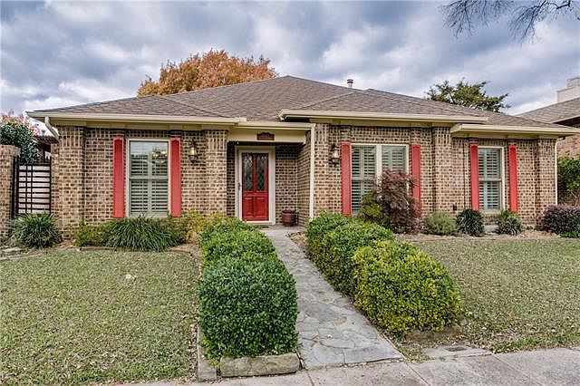 Warm & welcoming 1 story home nestled in sought after secluded neighborhood with excellent W Plano schools, city of Dallas&Collin Co. Open floor plan with abundant natural light, tasteful designer finishes, modern colors, high ceilings, plantation shutters, 2 spacious living areas w wet bar, large master split from secondary bedrooms has dbl vanities, separate shower & tub. Kitchen opens to outdoor living area.