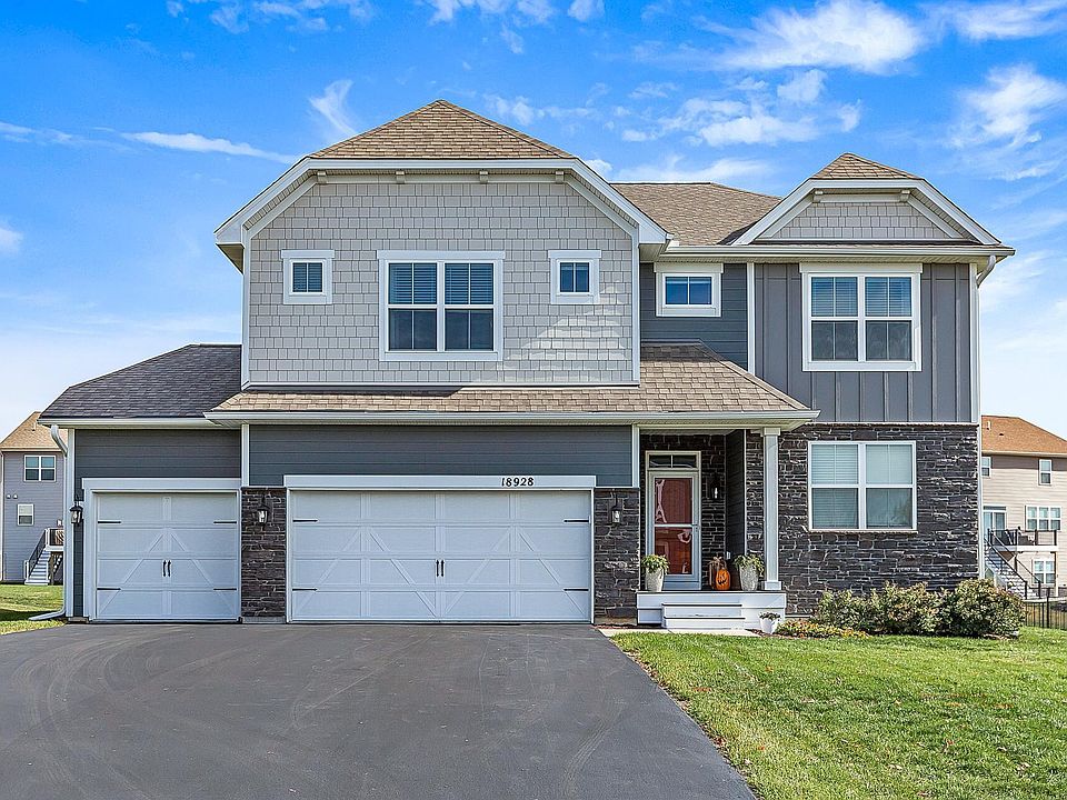 Stunning 2-story in coveted ChokeCherry Hill neighborhood, desirable location with Lakeville North schools. Move-in ready Graham floor plan built with D.R. Horton in 2016. Gorgeous main level with open-concept, large office/flex room, tons of natural light, gourmet kitchen including built-in stainless steel appliances, gas cooktop, granite counter tops, and beautifully finished white maple cabinetry. Upstairs features large owner's suite w/walk-in closet and on-suite bath, 4 bedrooms + laundry + spacious loft all on one-level. Finished basement in 2017 provides a generous family room, 5th bedroom, 3/4 bath and ample storage. Enjoy your oversized 3-car garage, storage shed, and paved brick patio w/built-in fire pit for entertaining. Don't miss out, think about moving to Lakeville next!