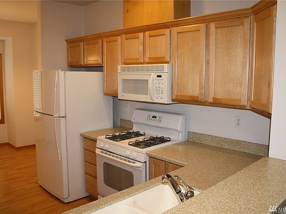 Welcome to the gated community of Belgrove. End unit with the master bedroom on the main level with full bath and 2 bedrooms upstairs with dual access to full bath plus loft for possible office or hobby area. All appliances included, 2 car garage, gas heat plus A/C, gas fireplace in living room, new carpet in dining, living and master bedroom. Kitchen includes Corian counters, eating nook and plenty of cabinet space. Easy access to Hwy 167, I-405, Valley Hospital and minutes to SeaTac Airport.