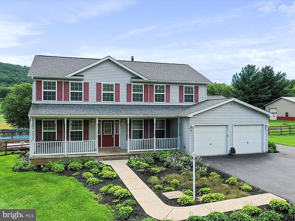 Welcome to 18929 Geeting Road—a custom-built Colonial nestled on a picturesque 1.16-acre lot in charming Keedysville. With mountain views, an expansive fenced backyard, and thoughtfully upgraded features throughout, this 4-bedroom, 2.5-bath home perfectly balances rural tranquility with modern convenience. From the moment you arrive, you’ll be drawn in by the inviting curb appeal: a classic front porch, beautiful landscaping, and a wide driveway leading to both an attached 2-car garage and an incredible detached workshop/garage. Step inside to find a well-maintained interior featuring newer flooring throughout most of the home (2015), an open-concept layout connecting the kitchen, breakfast area, and family room, and a dedicated main-level office perfect for working from home. Upstairs, all four bedrooms offer generous space and natural light, including a spacious primary suite with walk-in closets and en suite bath. You'll love the convenience of an upper-level laundry room. The unfinished basement, with a walk-up stairs, is ready for your vision. Step outside and you’ll find your own private getaway: a solar/propane heated above-ground pool with surrounding deck, a hot tub for year-round relaxation and a fenced backyard complete with a playset. For hobbyists or anyone in need of serious storage, the detached 32x48 metal building is a rare find—ideal for a car collection, workshop, studio, or additional recreational space. It includes an upper-level loft, adding even more flexibility to the space. Additional recent updates include: newer roof (2018), well pump and pressure tank (2015) and water heater (2022)—making this home move-in ready with peace of mind. Located minutes from Antietam Battlefield, the Potomac River, and several parks and trails, this home offers the best of both worlds—privacy, space, and scenic surroundings with easy access to commuter routes and small-town charm.