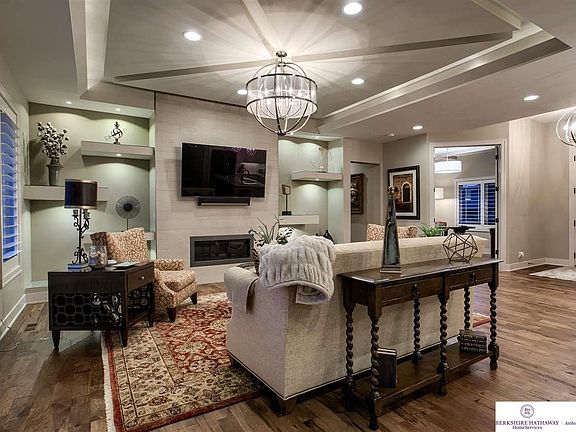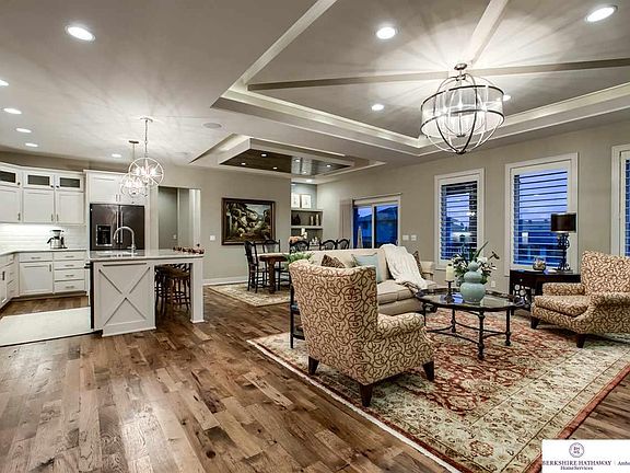 Welcome to this luxurious single owner ranch located in Indian Pointe! Sitting on a walk-out lot, this custom built home offers 4 BD, 3 BA and a heated 3 car garage. Stunning finishes include hardwood floors, LED lit vaulted ceilings, a tiled gas fireplace, canned lighting and plantation shutters throughout. The elegant eat-in kitchen is every chef's dream with black stainless steel appliances, granite countertops, a large island, soft close cabinets, under cabinet lighting and an oversized pantry with auto lighting. Spacious master BD offers a cathedral ceiling with an oversized walk-in closet and a spa like master BA offering easy access to the laundry room. Basement features include a spacious rec room and a wet bar offering tiled flooring and granite countertops. Enjoy the LED lit cinema area and storage galore! Covered deck offers gas grill hookup and outdoor speakers. Large partially covered patio offers plenty of space for entertaining. Welcome Home!