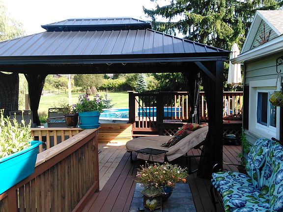 This is the home that you've been looking for! Close to the city but away from the noise and busy streets! Has a nice yard and enjoy the view of the woods from one of the two decks out back or sit by the pool and relax! It is newly remodeled and updated. Including the roof, windows, siding, heating system and City sewer connected. The new 1& 1/2 two story car garage is surely not to disappoint either! Lots of storage! House has 12 rooms: spacious living room and entry, bar room, dining room, kitchen, one bathroom, three bedrooms, possibility of four bedrooms, toy room, mud room, full basement unfinished with laundry. This house is a must see you will not be disappointed. House features a gas fireplace, unique light fixtures, beautiful tile & wood work through out. This home is roomier and more spacious than it looks from the road, so if you like outside and the area please call to see the inside! Appliances, wood stove & outside sun shelter are negotiable.