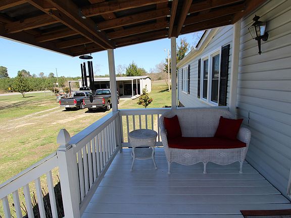 Spacious 3Bdrm/2Bth Double-Wide Home Situated on level, grassed 2-acre tract with some trees. Architectural Roof (2021), Rheem 14 SEER 3-Ton Heatpump (2020), Vinyl Tilt-Out Windows (2010), Sculptured Ceilings, Large Greatroom w/Wood-Burning Fireplace & Atrium Door to Covered porch-deck, Open Kitchen w/ breakfast nook & eating bar, Formal Dining Room, Large Master-Bdrm w/wonderful huge private bathroom featuring Double-Vanity, Soaking Tub, Walk-In Shower, large Walk-In Closet, and high-rise commode, Connecting Laundry & Mud Room... nice pantry Closet! Several Detached Buildings gives "storage galore" PLUS the 1200 Sq Ft. Metal Building Workshop/Garage with air compressor and window unit air-conditioner, pool table, and some of the kitchen appliances included. Also, don't miss the Children's Playhouse (w/power), and with a playset and fire-pit nearby. Also, don't miss the Herb Garden, Vegetable Garden, Wood Shed and Chicken Coop! Several items in house convey if wanted by New Owners such as the Piano, Attached Propane Heater & Mantle in Greatroom, & pine cabinet in Master-Bath. Sentimental items that Seller will not include in sale are the 2 "love-seat swings" and the bench near the Playhouse and also the white metal plant hangers in the front yard and by the bench near the Playhouse.