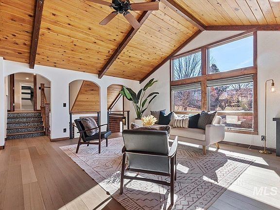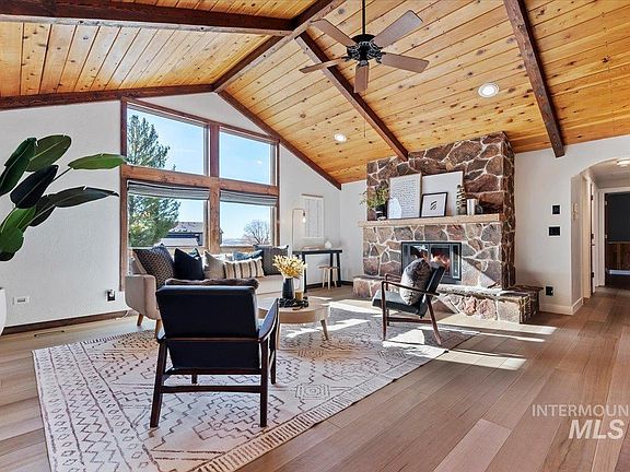 Artfully curated design offers the perfect juxtaposition of natural materials and chic, modern styling nestled on a premier 1/3-acre lot in picturesque Warm Springs Mesa. Rustic tongue and groove plank ceiling complements alpine ash flooring that flows seamlessly into the entertainer's kitchen equipped with a Viking gas range, custom refrigerator and island overlooking expansive picture windows. Fully finished walkout basement with direct access to the stunning backyard features a spacious great room and kitchenette making the ideal mother-in-law suite or private recreation space. The versatile layout is the epitome of flair and function with gathering spaces and thoughtfully updated bathrooms on multiple levels. Relax in the heated pool and entertain beneath a new covered patio with natural gas hookup for BBQ's surrounded by thoughtfully maintained mature landscaping and ambient lighting. RV parking tucked behind a rolling gate and garage featuring 220-amp power caters to the outdoor enthusiast or hobbyist!