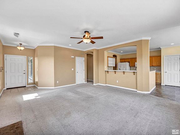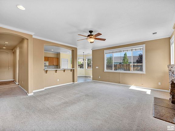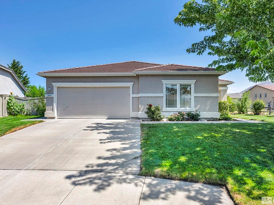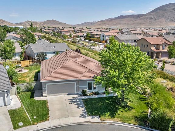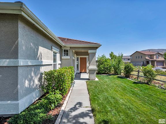 It's all about location for this beautiful South Meadows home. Now offering $5,000 flooring credit! Located at the end of a culdasac with gorgeous Eastern mountain views on this corner lot with privacy, tons of natural light and a large spacious yard. This South facing 3 bedroom, 2 bath , 2 car garage home is so inviting and features an open floor plan, crown molding throughout, gas fireplace in great room, chef's kitchen with bar area, dining nook, new farmhouse sink and pantry., Entertaining backyard has stamped concrete that wraps around to the front with jacuzzi, dog run, built in BBQ and firepit. You will love the combination in the landscaping with the grass areas, concrete and mature shrubs. Walking distance to several parks, walking paths and Depaoli Middle school. Enjoy all that South Reno has to offer in this fantastic home.