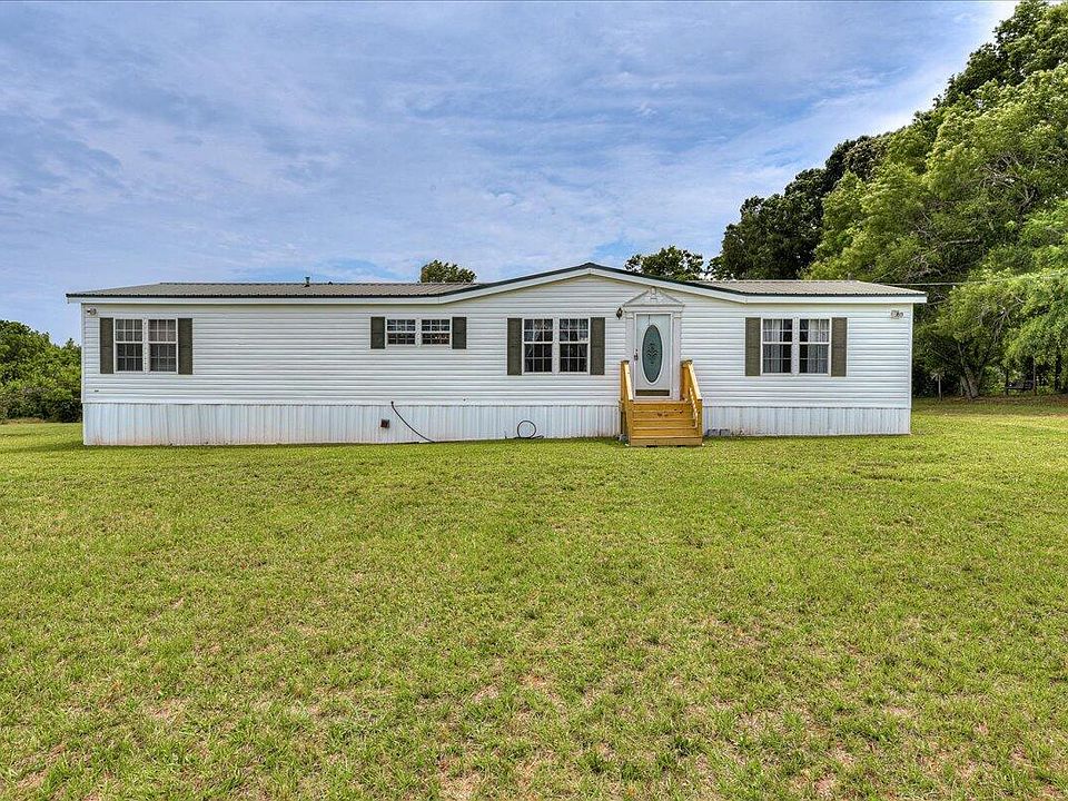 ALMOST 5 BEAUTIFUL ACRES !!! 4 SQUARE ACRES = THEN DRIVEWAY IS .95 ACRES!! LAND IS CLEARED AND FLAT AND HAS FRUIT TREES SUCH AS APPLES , PEACHES , PEARS, FIGS , LEMONS, AND SCUPUDINES!!. HOME SITS IN MIDDLE OF ALL THIS ACREACE. HOME IS 1998 DOUBLEWIDE WITH THREE BEDROOMS WHICH INCLUDE A LARGE OWNERS BEDROOM AND HUGE OWNERS BATH!!! VERY OPEN FLOOR PLAN!! KITCHEN OPENS TO LIVING ROOM AND DINING ROOM!! SELLER LOVED HEARING THE RAIN, SO HE HAD A METAL ROOF INSTALLED OVER EXISTING ROOF!! THERE IS ALSO A FREE STANDING CARPORT AND A STORAGE BUILDING WITH ELECTRICITY!! VERY NICE COVERED BACK PORCH/DECK!!! IF YOU HAVE BUYERS LOOKING FOR COUNTRY LIVING, PLEASE SHOW THEM THIS HOME AND LAND!! COUNTRY LIVING AT ITS BEST BUT ONLY 5 MINUTES TO DOWNTOWN LOUISVILLE AND SHOPPING AND RESTAURANTS!! WIN WIN LIVING!!