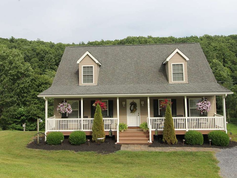 Stylish Cape Cod! 3 BR 2.5 BA cape cod home with lots of space! Master bedroom and en suite bath on main level! Open Living/dining/kitchen floor plan. Level two has two bedrooms, full bath and office space. Level two beautifully appointed with wood siding interior walls! Full unfinished walk-out basement. Woodstove in basement vents heat into main level of house. Roughed in plumbing in basement. Large rear deck & front porch great for entertaining! Beautiful mountain views from house!