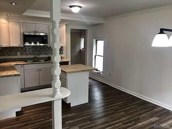 Water Front Property .Both main house and apartment have All new drywall, wiring, plumbing, heating furnace and water tank, kitchen, flooring, new tear off roof. 2 additional building on the back have brand new tear off roofs with new plywood and roofing. Best fishing in Western NY year round bass, salmon etc. Beautiful water views! The house is located on eighteen mike creek, Burt Dam and Fishermen park. Huge 2br/1ba apartment with beautiful water views. , You can live in the spacious 4br main house and rent out back apartment that can help pay back your mortgage. All separate utilities . 1 building on the back is a 2 story house that can be converted into rental fishermen cabin.Beautiful water view .right down the street from Lake Ontario and Olcott Beach