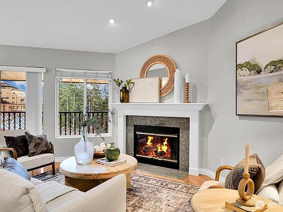 Cozy wood burning fireplaceGleaming hardwoodsRemodeled kitchenLight filled top floorThoughtful designer finishesStainless appliancesVaulted ceilings