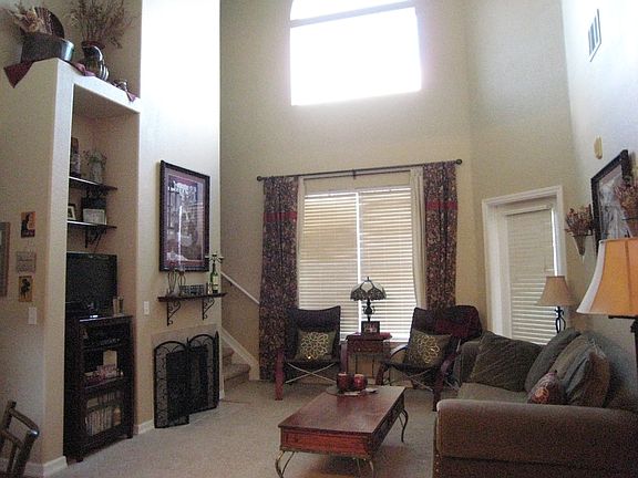 Clean, spacious 2 bedroom, 1.5 bath condo with vaulted ceillings, balcony overlooking pool, and loft area. 2 story living room with fireplace, front load washer and dryer, granite countertops, almost brand new carpet. Detached 1 car garage and open parking for additional vehicles.Tenant responsible for paying gas/electric. NO pets, NO smoking allowed.