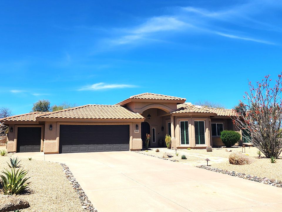 Outstanding property... 23,200 sq ft lot. Mountain View, swimming pool. 3 bedroom + 3 bath home. Very inviting Living Room with fireplace and walk-out to Patio. Large multi-purpose room is currently used as a Gathering Place for friends and family. Lovely Primary Suite. Guest Room #1 is spacious and very accommodating with bath nearby. There is a private guest room with en-suite, ideal for visitors. A heated pool with waterfall, travertine tile and fencing has been added recently. 2 car + golf cart garage.