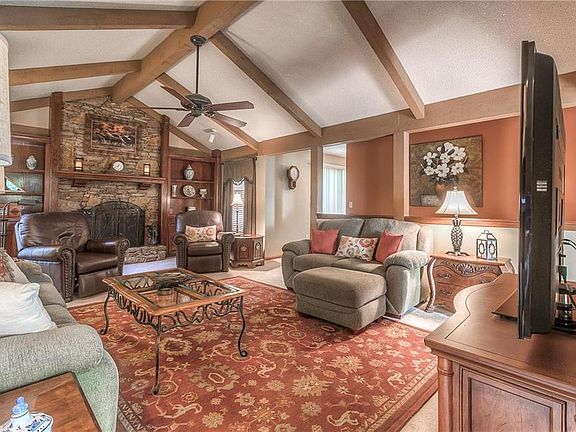 Secluded home on treed 1 acre. Well-loved raised ranch with custom touches. Cozy great room with cedar beam, stone fireplace & build in shelves. Formal dining and tile entry. Huge unfinished basement includes extra wide 2 car garage with work bench area, separate shop/hobby area, and storage space. Desoto school, close to streamway trails, highway access.
