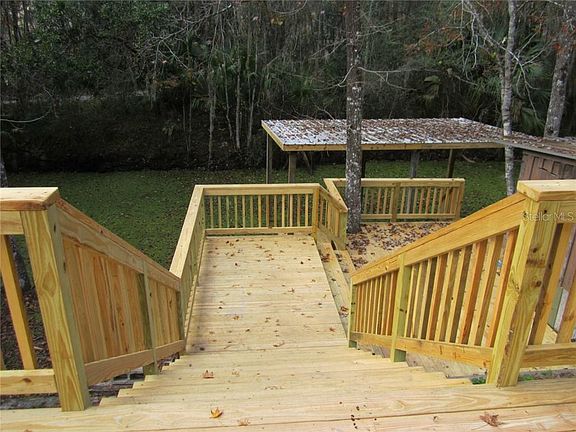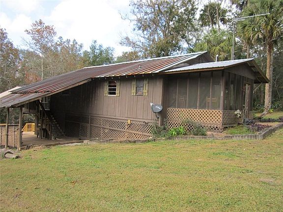 Old Florida waterfront get-a-way in the Ocala National Forest. This rustic 2-level cabin looks like it stepped out of Florida history from a hundred years ago, yet, it has all the modern amenities to keep you comfortable. Such as, central heat and air, flushing toilets and hot & cold running water. Constructed completely from rough sawn lumber from a local sawmill-cypress exterior and beautiful magnolia interior. There are two bedrooms and bath in the upper level and 1 bedroom and 1/2 bath on the lower level, 3 screen porches, lots of decking and a dock that fronts the whole shoreline even a boathouse for your boat. All of this sitting on a high hill overlooking a private canal that's just a few hundred feet from a beautiful spring that flows into the Ocklawaha River.