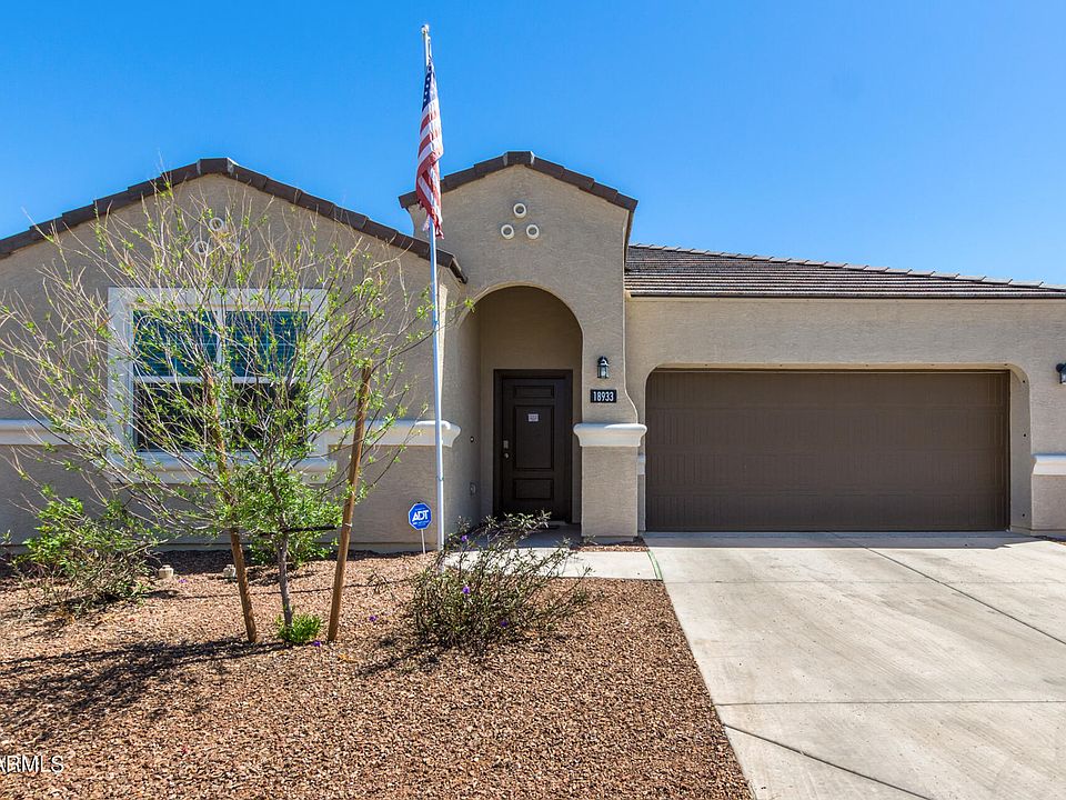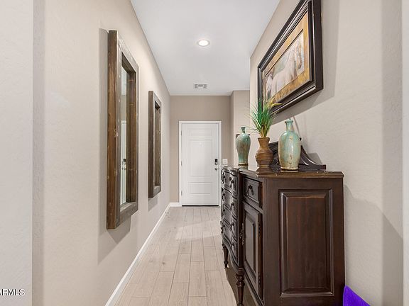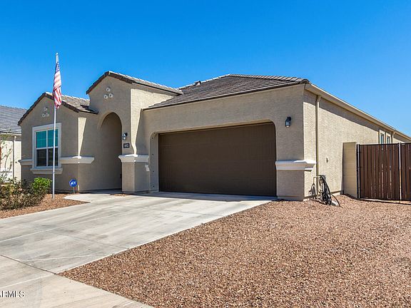 Be the proud owner of this 2021-built residence offering a 2-car garage & an RV gate! Inviting hallway leads to the open floor plan featuring tall ceilings, lovely wood-look flooring, neutral palette, decorative ceiling fans, bountiful natural light, & Arcadia doors to the back. Prepare gourmet meals in the stunning kitchen boasting SS appliances, beautiful wood cabinetry, recessed lighting, granite counters, tile backsplash, a pantry, & an island w/a breakfast bar. The bright den is excellent for a home office. Continue onto the main retreat providing a pristine private bathroom w/dual sinks, a glass shower, & a walk-in closet. Sit back & relax under the covered patio in the large backyard w/fantastic mountain views & infinite possibilities to create your backyard oasis. Must-see!