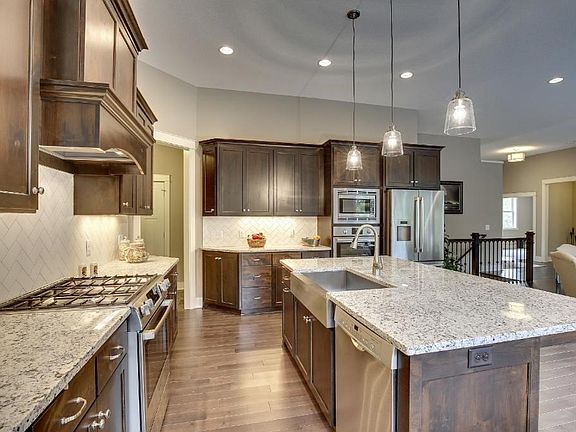 Come see this inspiring executive rambler featuring: gourmet style kitchen w/custom cabinets (Knotty alder w/54" upper cabinets), detailed built-ins throughout which include accented barn wood, & an arched opening above the fireplace, custom walk-in shower, o-sized walk-in closet which is assesable to the laundry rm, and a L lvl bar w/ million dollar finishes. Our 2 story model is available to view at: 18835 Iden Way. We have 30+ other lots in Dakota.
