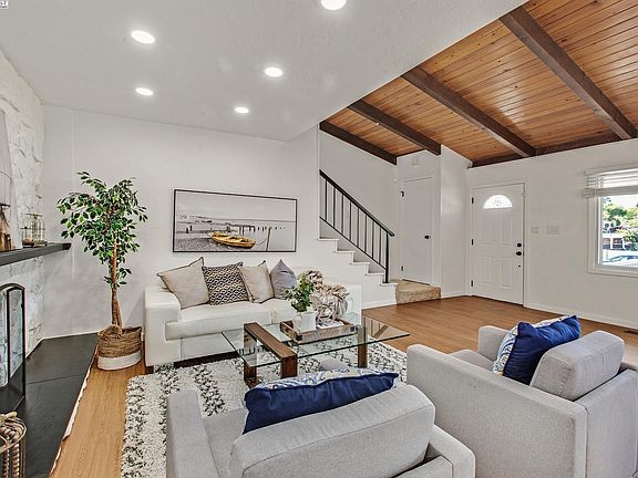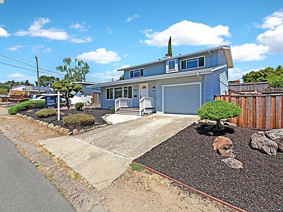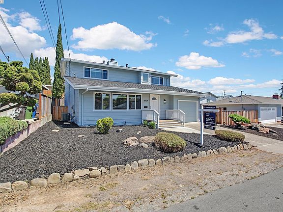 Highly desirable Castro Valley schools. Walking distance to CV high school. Near BART and 580 & 680. Remodeled in 2024. 4 bedrooms, 1 downstairs, and 3 full baths. Remodeled kitchen with stone counters, white cabinets, smooth top range, micro wave and dishwasher. Breakfast bar and kitchen nook as well. Formal dining area. Recessed lighting in kitchen and living room. Living room dining area have open beam ceiling. Newer laminate flooring down stairs and newer carpeting upstairs. Freshly painted. Primary bedroom has walk-in closet. Primary bath has dual sinks and double stall shower. Back yard has a patio and is ready for the right person to put some love into it. New roof in 2023. Has A/C for the upcoming summer. Fresh exterior paint. Garage is a 2 car tandem garage.