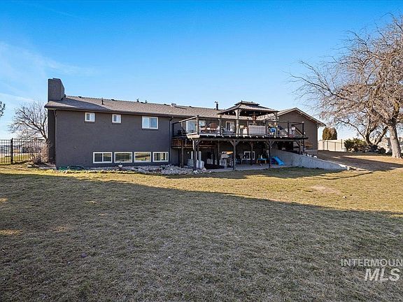 3 ACRES and 2 SEPARATE LIVING QUARTERS! Large home with 3 Bedrooms 2.5 baths large living area and remodeled kitchen on upper level. The lower level has a remodeled full kitchen, dining area, oversized living room, 3 bedrooms and 1 bath with entrance to lower level from back of home or inside home! Home is situated up at front of acreage and there is plenty of parking at back for business equipment, horses or to build a large shop! There are 2 large sheds with electricity at back, RV metal storage cover and chicken coops. Home has large back fenced in yard and oversized back TREX deck. New windows, tankless water heater, new HVAC -gas heat, beautiful flooring, large mud room or in home office space. The separate living quarters makes for great mother in law space/rental potential/multi family use. Seller has operated a small dog day care with great cash flow. Bring your business. Acreage use is endless! Minutes to interstate