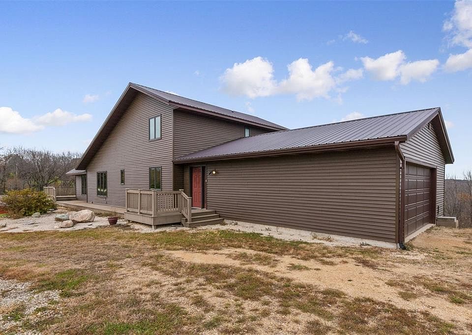 A little piece of country paradise on the outskirts of Anamosa. Half a mile off of a hard surfaced road - Beautiful home that sits on over 6 acres with a pond and 2 outbuildings! WOW! The roof and siding is only 2 years old, newer geothermal system, brand new carpet and paint! The gleaming hardwood floors throughout the kitchen and living room are gorgeous - perfect for entertaining with open concept. 3 seasons room with wood burning stove and access to deck to enjoy the nature and surroundings. The 2nd floor has a huge master suite that looks over the main floor but still has privacy. The walkout lower level is ready for you to put your touches on it - 2 large rec rooms, non conforming bedroom and a full bathroom. If you're looking for a one of a kind acreage - look no further!