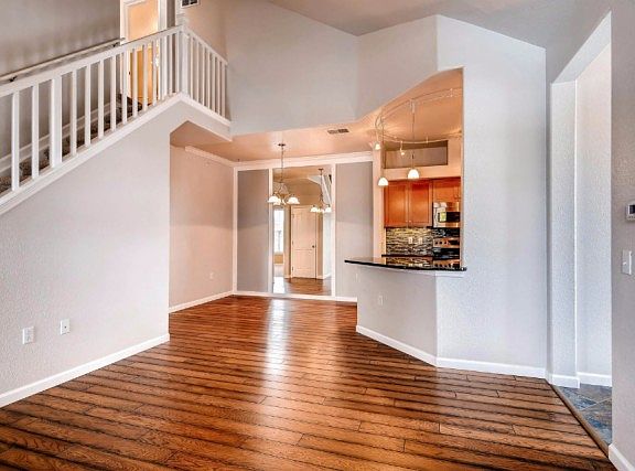 Here's the one you've been waiting for!** Don't miss out on this newly remodeled Condo!** 2 Bed 2 Full Baths with 1 car garage detached.** Spectacular upgraded features include beautiful hardwood floors, new paint throughout and a newly updated kitchen.** Kitchen includes granite countertops, new lighting, new soft closing cabinets along with newer stainless steel appliances.** New solid wood doors throughout.** Two updated full bathrooms include Silestone countertops with raised counter heights cabinets and tile floors.** Two large bedrooms include large closets with closet organizers.** Bonus washer and dryer included! Conveniently located near Buckley AFB, DIA, E-470 and Southlands.