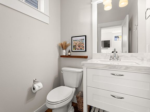 Charming Craftsman-style home in the heart of Northwest Crossing. This impeccably maintained beauty offers 3 bedrooms, 2.5 baths and 2,047 sq ft of bright, open living. The vaulted great room is filled with natural light and features a gas fireplace with a custom mantel and tile surround. Wide-plank hardwood floors flow through the main level. The chef's kitchen impresses with a large island, slab quartz counters, stainless commercial-style range, refrigerator, and spacious pantry. Main-level primary suite is a peaceful retreat with a beautifully tiled bath. Upstairs offers two bedrooms, full bath, and a bonus area with built-in bar. Enjoy covered patios in both front and back yards. Low maintenance turf & pavers in the private side yard. Water-efficient landscaping. Fresh interior/exterior paint. Epoxy garage floors. Located just steps from Discovery Park, trails, dining, and shops. Energy-efficient construction and timeless curb appeal make this home a true standout.