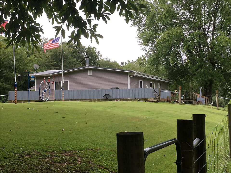 SELLING AS IS! Secluded, quiet, extremely comfortable & easy to get to are good words to describe this great place to call home! The driveway will open up to a great view of a nice size pond and woods. Over 5 acres of woods behind you to explore. Detached 2 car oversized garage & great size fenced yard with lots of room for your pet to roam. The pond has a small section at the West end that is shared with the ground next door. This is marked with gates going across. This fantastic home is very inviting coming in to the great room w/stone ventless fireplace that is currently propane, but could be wood burning again. The larger living room area can be converted back to bedroom spaces. The huge kitchen boasts lots of cabinet & countertop space. Refrigerator and stove are negotiable. This property consists of 2 parcels which includes the machine shed in front of the home as well as the home and wooded acreage for over 9 acres.
