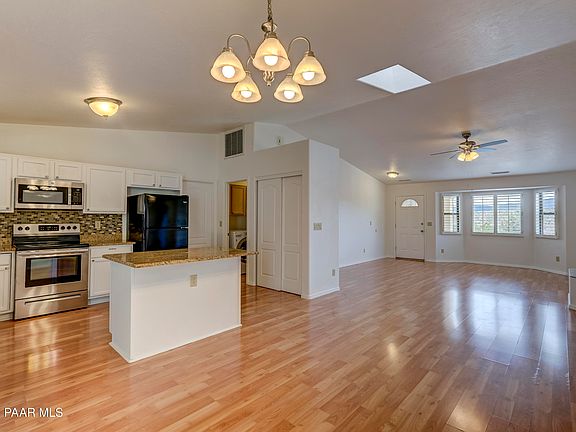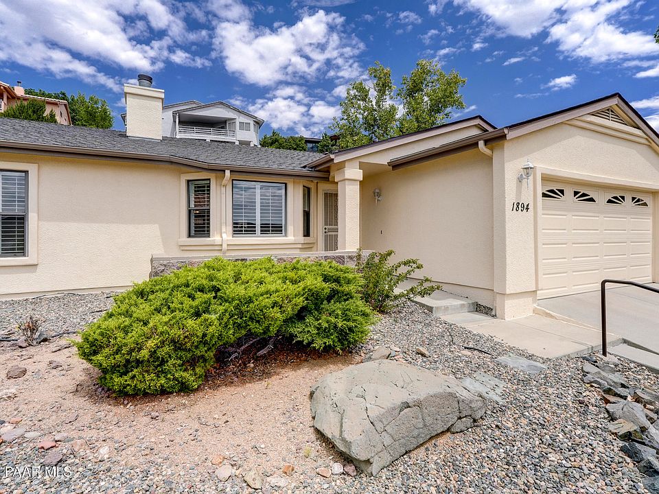 Beautiful ONE STORY home in the desirable Cliff Rose subdivision. 3 bedrooms, 2 baths, 2 car garage. New roof installed April 2024! Nice laminate flooring in all the main living areas, each room has white plantation shutters. Desirable split floor plan. Nicely landscaped in the front with a substantial rock tiered wall. Easy to maintain landscaping. Outdoor carpet on the back patio. This home is less than 10 minutes from shopping and all that downtown Prescott has to offer.
