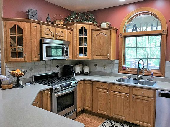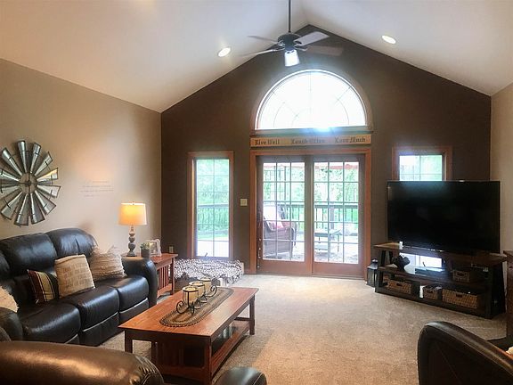 Gorgeous brick front 1 story ranch home on 1.88 acre lot in Victory Gardens! Located just minutes from town, this home was custom built in 2002 featuring 3 BR's and 2.5 baths on main floor (2131 sq ft) and full finished lower level (1700 sq ft) with walk out basement. Quality construction with solid oak doors, oak trim, wood floors, and tray ceilings with lighting in DR and Master BR. Main floor cathedral ceiling LR w/newer carpet overlooks the large composite deck with gazebo. Kitchen has oak cabinetry with SS appliances (French door frig & gas stove) and breakfast bar. Main floor laundry and ½ bath. Attached 2.5 car heated garage w/built in storage, utility sink and concrete drive. Spacious master BR has new wood laminate flooring, double sinks, jetted tub, shower stall, 2 WIC's and private door to deck. Lower level has 4th BR w/additional full bath, large family room w/fireplace, built in TV w/surround sound system, and kitchenette. Private backyard concrete patio w/ firepit.