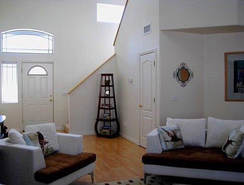 NOT YOUR ORDINARY TOWNHOME ~ Packed full of spectacular upgrades, this 2bd/2.5ba, 1656sf home sparkles & shines. Inside - soaring ceilings, light wood floors, skylights allowing abundant natural sunlight to pour in, & an open floorplan that allows entertaining to flow effortlessly from Kitchen, to Dining, to Living RM where a gas fireplace w/stone surround keeps the chill away. A well appointed Kitchen inc. granite tile countertop, custom back splash, glass front cabinets, built-in microwave & ample storage. Master Ste on main floor boasts travertine floor/shower, & dual vanity sink. 2nd bdrm/bath upstairs offers a stunning vanity that welcomes all Guests, & the spacious loft area doubles as Ofc/Game Rm. A/C, generous bkyard, & all located on the quiet side of Boulder Pointe. CALL TODAY