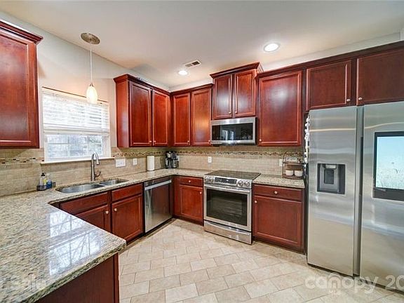 This home is in a great neighborhood and great location, desirable school district, community pool and clubhouse, parks, walking trails and green-ways, short stroll to restaurants, wine bar, and shops. This home has a private fenced in back yard featuring a deck, which over looks the woods and a small stream. This home features many upgrades including kitchen with stainless steel appliances and granite countertops. Upstairs features 4 large bedrooms all with large closets, and walk in laundry room. Roof less than 3 years old and new hot water heater. The master suite has custom closet built ins, bathroom upgraded with a custom tile shower and large double vanity. Home upgraded with nest thermostats, nest smoke detectors, and video ring door bell. Neighborhood hosts community events like outdoor movies, bands, food trucks, and more. This is a must see!