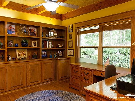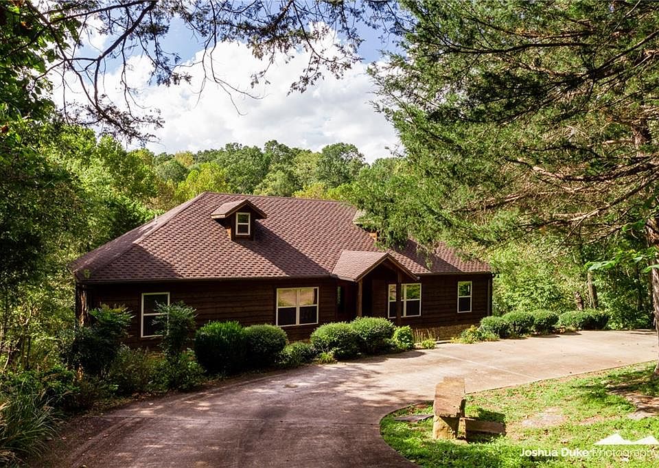 Fayetteville end of Beaver lake area ! Your private retreat awaits you with this two-level custom-built home on 4 wooded acres. Land is partially flat & partial hillside with walk out basement. 4 BD + office, formal dining room & lots of storage. Lower level is an entire suite w/ large living area, bedroom and full bathroom. Close to Sassafras Winery, new Schools , shopping, medical facilities & more, you can have the best of both worlds! This home features over the top wood ceiling beams, hardwood floors, granite.counter tops throughout, & beautiful wood detail that is truly breathtaking! Look out over the woods from the upper full-length deck or enjoy the hot tub and sauna on the bottom deck (both convey). The home has both electric & propane heat sources, a wood-burning stove fireplace in the living room & gas log fireplace on the lower level. New HVAC in summer of 2018. You really must see this home to appreciate all that it offers! VETERANS, THE MORTGAGE ON THIS HOME IS ASSUMABLE @ 3.375%.