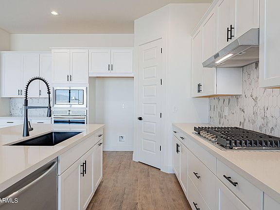 ASK ABOUT CLOSING COSTS OR A MOVE-IN PACKAGE ON THIS BEAUTIFUL MOVE-IN READY NEW HOME! It's the very popular Crimson with 3 bedrooms + flex space, 2.5 baths. Multi slide door that leads out to the extended covered patio. Large walk in shower at owner's bath. Stainless steel gas appliance package with a 30'' cooktop. Linen-off white cabinets with hardware, pull out trash drawer with two bins, 42'' kitchen uppers. AZT White sand granite countertops. Undermount single bowl kitchen sink. Upgrade flooring includes EMS Ravenna Olmo 7x24 plank tile in all areas of the home except bedrooms/closets and 5'' base boards and 3 1/4'' door casings. 8' tall garage door 2 openers & garage service door.
