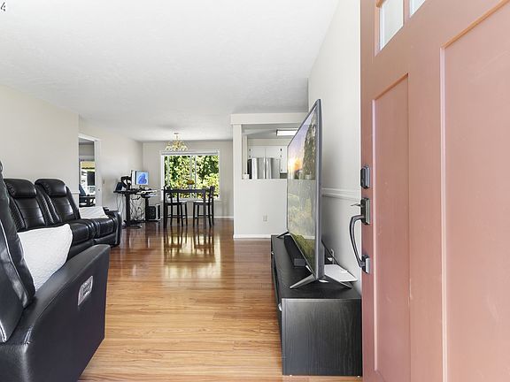 The Woodstove/Insert in the photo has been removed from the property.This home is like Winning the Jackpot now all you have to do is enjoy the seller's updates. The first thing you'll notice is the Home is Bursting with Light from All New Milgard Windows that were installed in June 2024, along with all New Blinds, In July 2024 The Exterior was Freshly Painted with Sharp Modern Colors, All Interior Walls were Painted in a Warm Welcoming Neutral Color, Also all the Ceilings were Painted in a Classic Crisp White. Then to Top it off New Carpeting was installed on 7/29/2024 in all Bedrooms. New AC was installed in Dec 2023. These are some of the other Updates/Improvements completed within the last 10 years: 95% Bryant Furnace, 68 gallon Rheem Water Heater, Gutters, Front Door, Laminate Flooring, Dishwasher (the seller said has probably only been used about 10 times) Garage Door, Fully Insulated Ceiling. The Newer Sliding Door with Built-in Blinds and the Bathroom has also had Some Nice Updating Done with Sleek Sink & Cabinet. This is a Terrific Open Floor Plan with the Living Room, Dining Area & Large Kitchen all Flowing together! WOW...Are You Kidding Me...This Home Even Has a Bonus/Family Room with a Fireplace. Huge Open Kitchen just waiting for your Creative Flare to Spice It Up. Pleasantly sized bedrooms, Large Fully Fenced Yard with Nice Storage Shed and you might even be able to create possible RV parking. This Charmer is Located on Cul-De-Sac and is ready to be a Show Stopper with Your Finishing Touches! Stainless Steel Appliances stay, washer & dryer stay. Close to Max & Bus Line, Shopping and Many Other Conveniences. Need a break and want to get out in nature check out some of the many Parks that are nearby like Willow Creek Park, Whispering Woods Natural Area & Tualatin Hills Park.