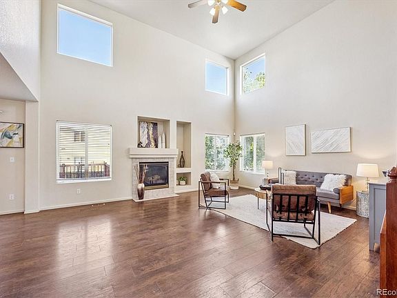 Bright and beautifully maintained Sterling Hills home—move-in ready and waiting for its next chapter! From the moment you step inside, you'll be welcomed by an abundance of natural light and a warm, inviting atmosphere. The elegant formal living room features rich hardwood floors that seamlessly flow into the heart of the home—the kitchen and family room—creating an open, connected space ideal for both everyday living and entertaining. Spacious eat-in kitchen is a chef’s delight, offering abundant 42-inch cabinetry, ample counter space, and all appliances included, making meal prep effortless. Just off the kitchen, step out onto the expansive backyard deck, perfect for summer BBQs, gatherings with friends, or simply enjoying Colorado’s beautiful weather. The family room impresses with soaring cathedral ceilings, a cozy gas fireplace, and built-in shelving, ideal for showcasing books, décor, or media equipment. A main-level powder bath offers added convenience for guests. Upstairs, the generous primary suite is a peaceful retreat, complete with a walk-in closet and a private en-suite bath featuring dual sinks and a full tub/shower combo. Two additional bedrooms share a well-appointed full hall bath. The unfinished basement provides a blank canvas—perfect for a future home gym, office, rec room, or simply excellent storage space. All this, in a prime location close to parks, schools, shopping, Southlands Mall, and miles of walking and biking trails. This home truly offers the full package of comfort, style, and convenience. Don’t miss your chance to call it home!