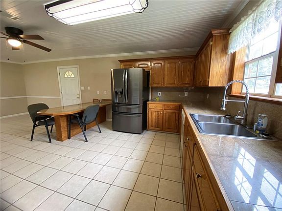 Nestled on a 3 acre tract, this charming 3-bedroom, 2-bath brick home exudes rustic elegance and modern comfort. Step inside to find a warm and inviting living room featuring a cozy wood fireplace to gather with family and friends. The huge kitchen is a chef's dream, offering ample counter space and a generous dining area. Each bedroom is designed for comfort, with the master suite boasting a private bath. Outside, the expansive yard provides endless possibilities for recreation and relaxation, while the barn out back adds a touch of country charm and functional space for hobbies or storage. This property combines the tranquility of rural living with the conveniences of town only 5 minutes away! Flood Zone X!