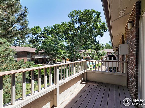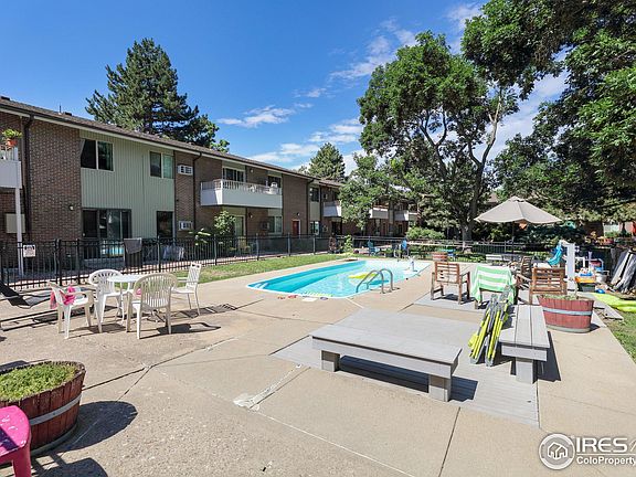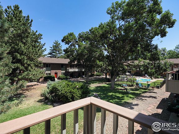 Great location just blocks from North Boulder shopping center, restaurants, and not far from the Pearl Street Mall! Small complex boasts great amenities with an outdoor swimming pool, central park courtyard, additional storage closets, and shared clubhouse sitting room. One-level living on 2nd floor with a great balcony overlooking the central courtyard. Unit was remodeled in the past including updated kitchen with SS appliances, antique vanilla cabinets, and granite countertops, updated bathroom, newer ceiling fans, and newer windows! Interior completely painted prior to listing and exterior was repainted last year. Includes a storage closet and 1 reserved off-street parking place. Move-in condition and a quick closing is possible!