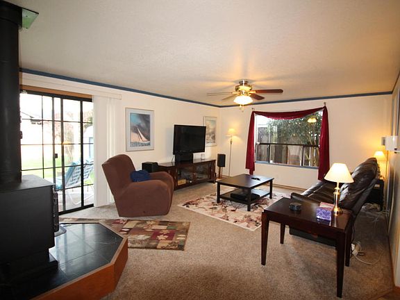 Immaculate and affordable is this upgraded home on a quiet street. Living room has a wood stove and a slider to a covered patio. Kitchen has had new cabinets, counter tops, appliances and flooring. Large dining area with room for a hutch. The yard is large with mature landscaping and privacy.