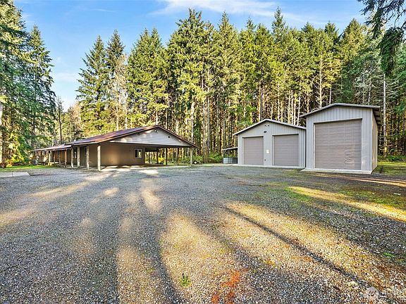 This peaceful and private refuge on the North Fork of the Newaukum River is truly one of a kind! The Champion doublewide manufactured home, built in 2004, is nestled in the middle of 5.45 acres with marketable timber and includes 1620 sf, 2 bedrooms plus office, open layout, vaulted ceiling, new interior paint, solar tube skylights, newer metal roof, freestanding wood stove, heat pump with A/C, 40x28 sf carport, and wrap around covered porch to sit and enjoy the sights and sounds of the river. Outbuildings include 30x28 detached garage, 16x40 heated RV garage, 12x24 carport, 16x30 carport, and 40x68 sf Quonset Hut shop with 15,000lb car lift, 400-amp power, air compressor, vacuum, hydrants, and heated/cooled office space and bathroom.