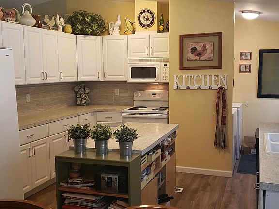 Located in Ni Lah Sha Village, 55+ community is this light and bright 3 bed, 2 bath home is nestled in a cul-de-sac on a large .17 +/- acre lot. The home features newer laminate flooring in the living room with vaulted ceiling and propane fireplace. The country kitchen is open and bright with white cabinets and features an island, tile backsplash and plenty of storage. The primary suite features a private bath with a newer tile shower/tub. The primary has great separation from the other guest bedrooms. Outside is private and fully fenced with sprinklers and garden area. Relax on the covered front porch or soak up some sunshine on the side patio! There is an oversize 2 car garage with plenty of room for storage and so much more! Close to restaurants and shopping! *HOA may allow people under 55 to live in community, contact listing agents for details.