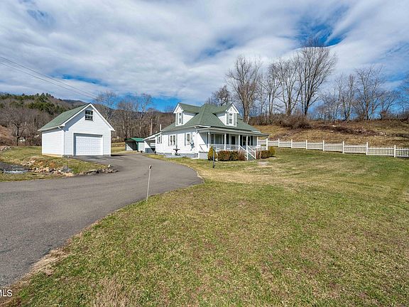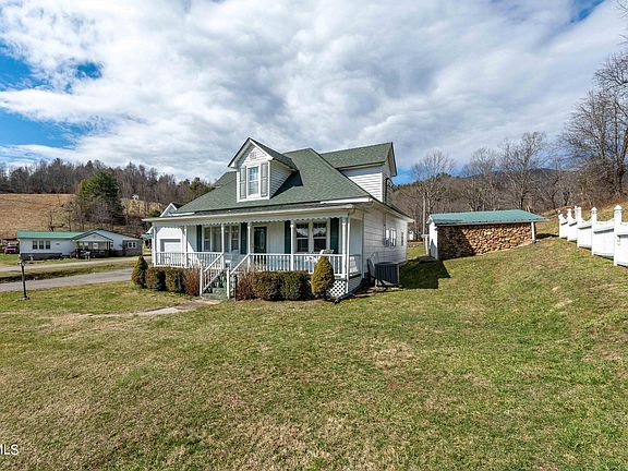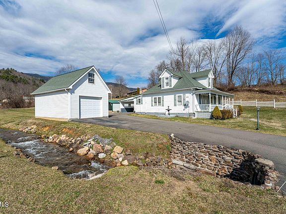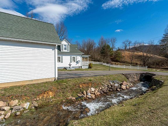 WELL-MAINTAINED TRADITIONAL HOME with a year round stream flowing near by. This home provides plenty of extra parking with a detached garage and two carports. The garage features a bonus room upstairs that could be easily finished or used for extra storage. The front and back yards are mostly level perfect for gardening. There is an older building that was used as a spring house and cellar. Next to it is additional storage storage space or could be used as a workshop. The covered front porch is a great place to enjoy the sounds of the flowing stream. As you enter the home you will see the living room and the beautiful hardwood flooring throughout most of the home. There are two bedrooms on the main level with a full bath. A small sitting area leads into the kitchen and dining area. The laundry room is just past the dining area. Upstairs you will find two more bedrooms with hardwood flooring. This is an older home but has been well-kept and is move-in ready. Easily accessible and only a few minutes from Watauga Lake! ALL FURNITURE CONVEYS (except for the downstairs hutch with contents in the hallway, secretary desk in the living room, crocks in the kitchen, kitchen dishes, little butter dish, Apple pie plat in the kitchen, Bible in the living room, globe in the bedroom, tea cart upstairs and blue willow). Buyer/buyer's agent to verify all info.